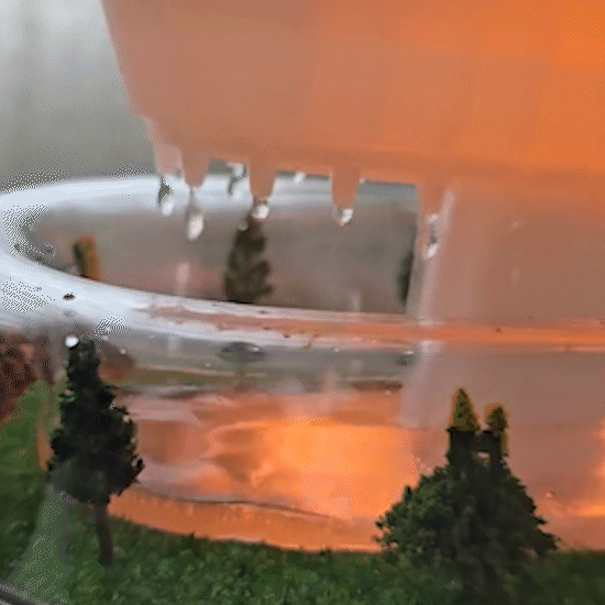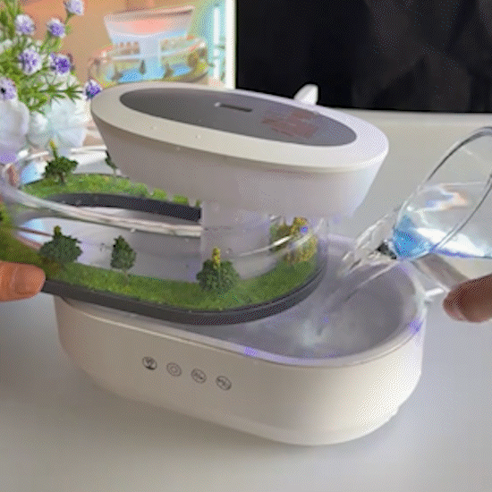 - Üst bölümden süzülen damlacıklar, ışıkla birleşerek odada doğal, sakinleştirici ve huzur veren bir atmosfer oluşturur.
