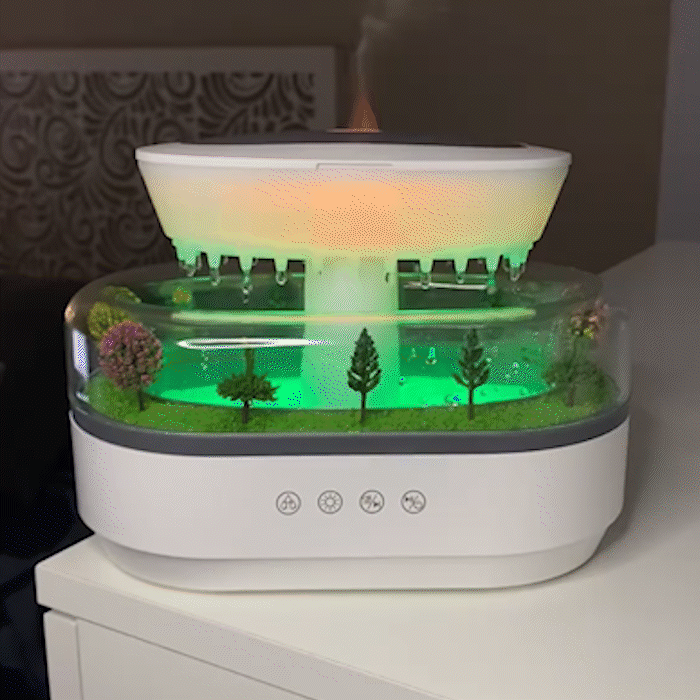- RainCare™’i sıradan nemlendiricilerden ayıran en özel detay, gerçek su damlalarıyla oluşturulan yağmur efektidir. 🌧️